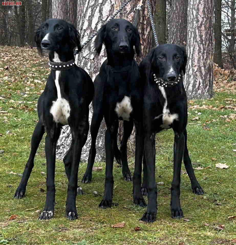 I am offering four black male Saluki puppies of Iranian origin, 10 months old, born in the Netherlands and bred from my directly imported Saluki stock from Iran. My Salukis are original Iranian show-type dogs.