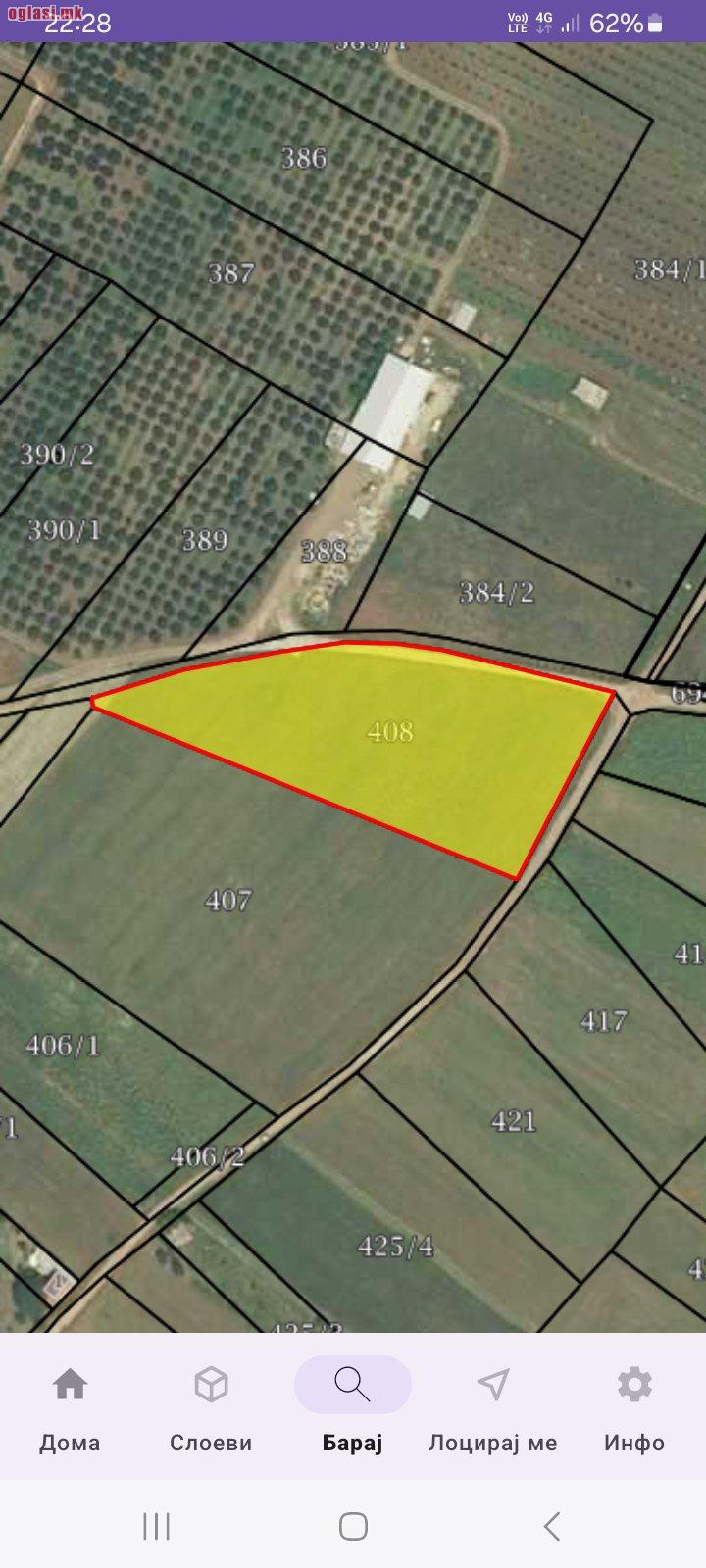 Se prodava plac vo Bunardzik od 7000 m2 sto izleguva na dva pata.